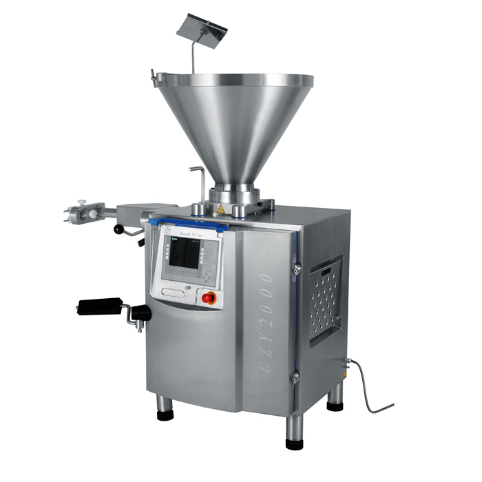 本機專門用於在食品工業加工中,灌裝食品、將食品分(fèn)段(duàn)和扭結。適用於灌製各種火腿及(jí)火腿腸類相關產品,安裝扭結機構可灌製台烤、親親腸、天然腸衣產品。