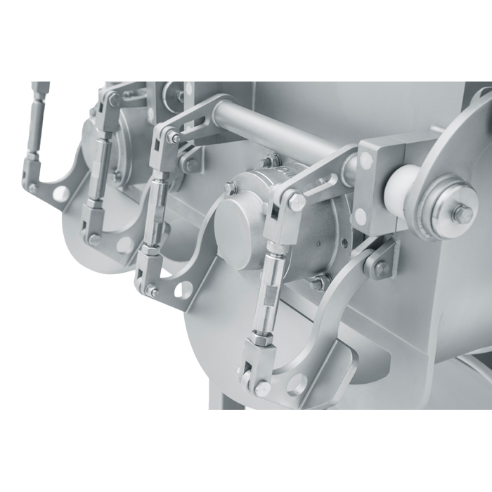 4. 采用減速機齒輪鏈條傳動/減(jiǎn)速機直連(lián)傳動,機(jī)器運動平穩可靠、噪音低,適合各種(zhǒng)工藝要(yào)求,是改變產品(pǐn)品質的(de)理想設備。