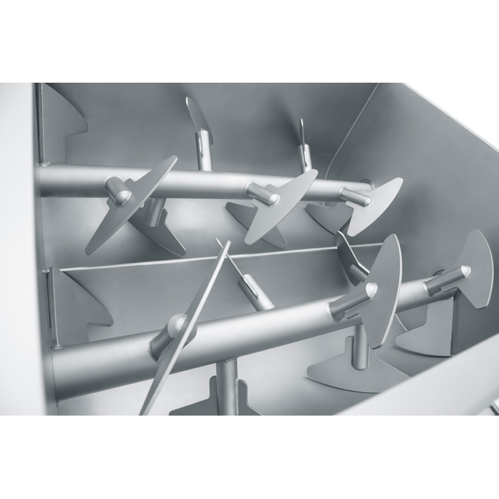 工作原(yuán)理:采用雙軸橢圓比螺旋布置的扇形漿(jiāng)葉,對物料進行徑向攪拌,同時(shí)完成軸向回流,使物料以得充分混合均勻,達到理想的混合效果。