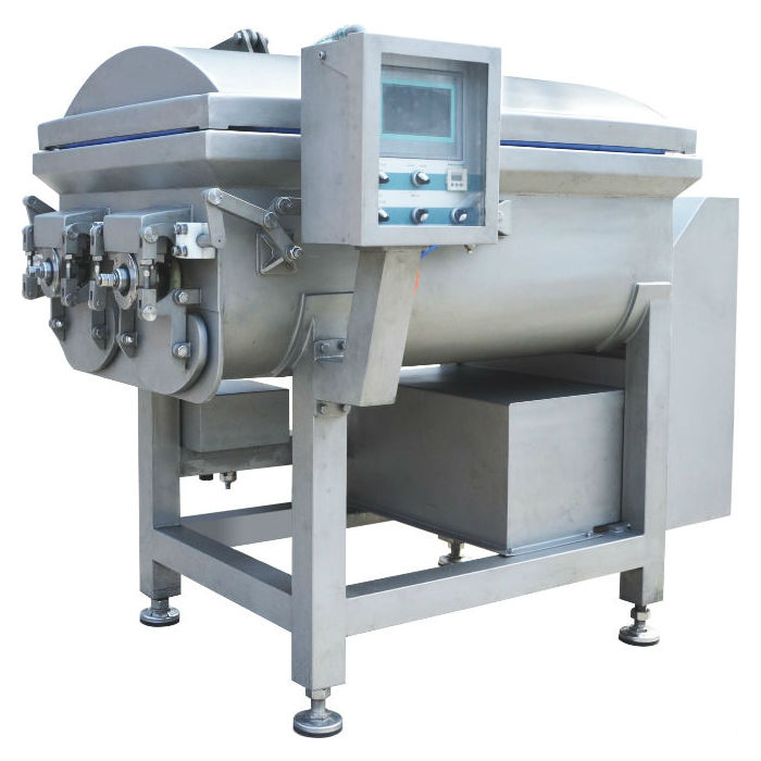 2、可設定真(zhēn)空度,真空效(xiào)果好,無氣泡,可使物料在真空狀態(tài)下,餡(xiàn)料攪拌均勻,充分膨脹,彈性好,色澤鮮豔並較大限度地提高蛋白(bái)質。