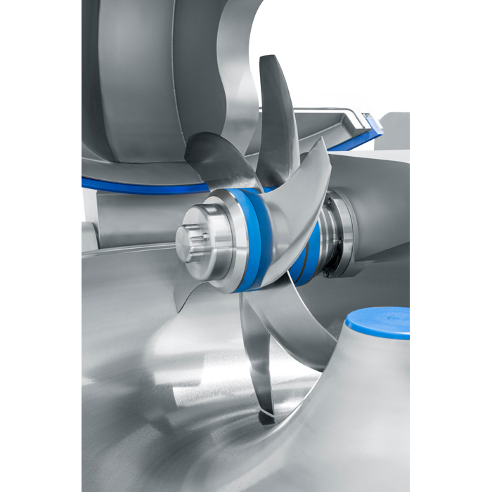 5、 斬刀為6把刀(可以裝8把刀),刀具由專業刀具生產(chǎn)廠定製。刀的形狀為流線形(xíng)。斬切細度好、升溫程度小、斬拌時間短,提高了肉製品的(de)乳化效果、彈性、細膩度及出品率。