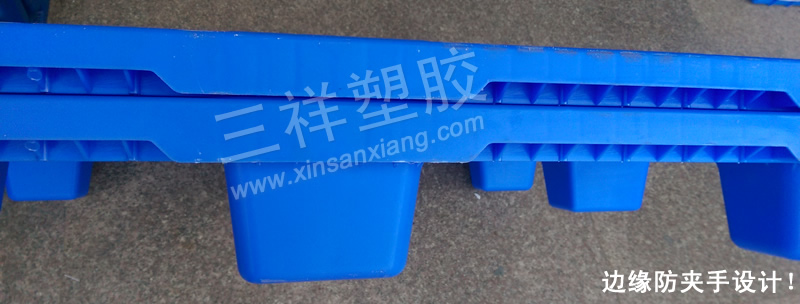 溫馨(xīn)提示:此(cǐ)款密網格(gé)套(tào)疊九腳采用(yòng)全新共(gòng)聚PP料生(shēng)產,韌性(xìng)和耐衝(chōng)擊性非常好(hǎo),麵板網格加密,動載能力相當不錯,最大的特點就是堆碼套入非常緊密,加高1塊加4.5CM,每100塊堆碼(mǎ)時隻占了5.6立方左右;為(wéi)方便操作,在卡板邊緣有設計了手指位,防止人工操作手指被夾的風險。